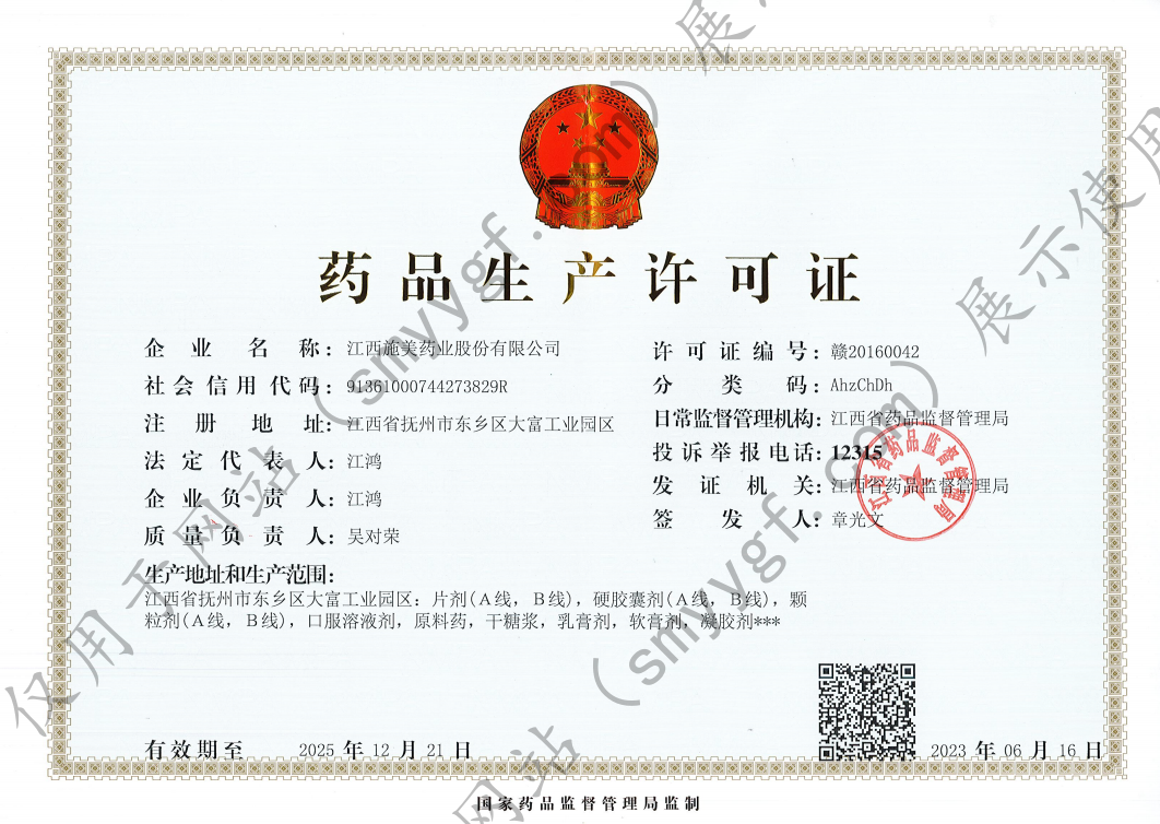 贛ICP備2021001468號-1 | 營業(yè)執(zhí)照 | 藥品生產許可證 | 互聯網藥品信息服務資格證書